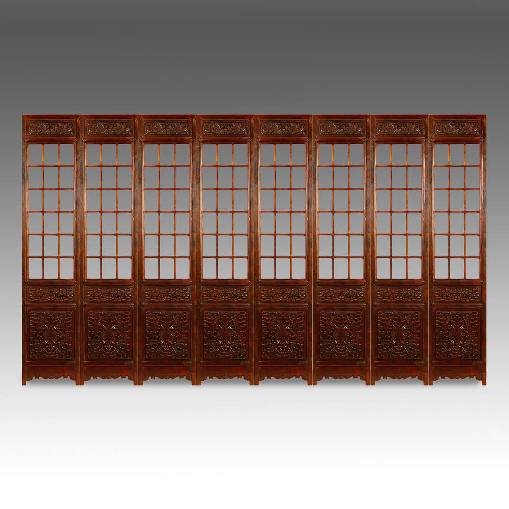 Eight Panel Screen Set with Double Happiness & Dragon Motifs