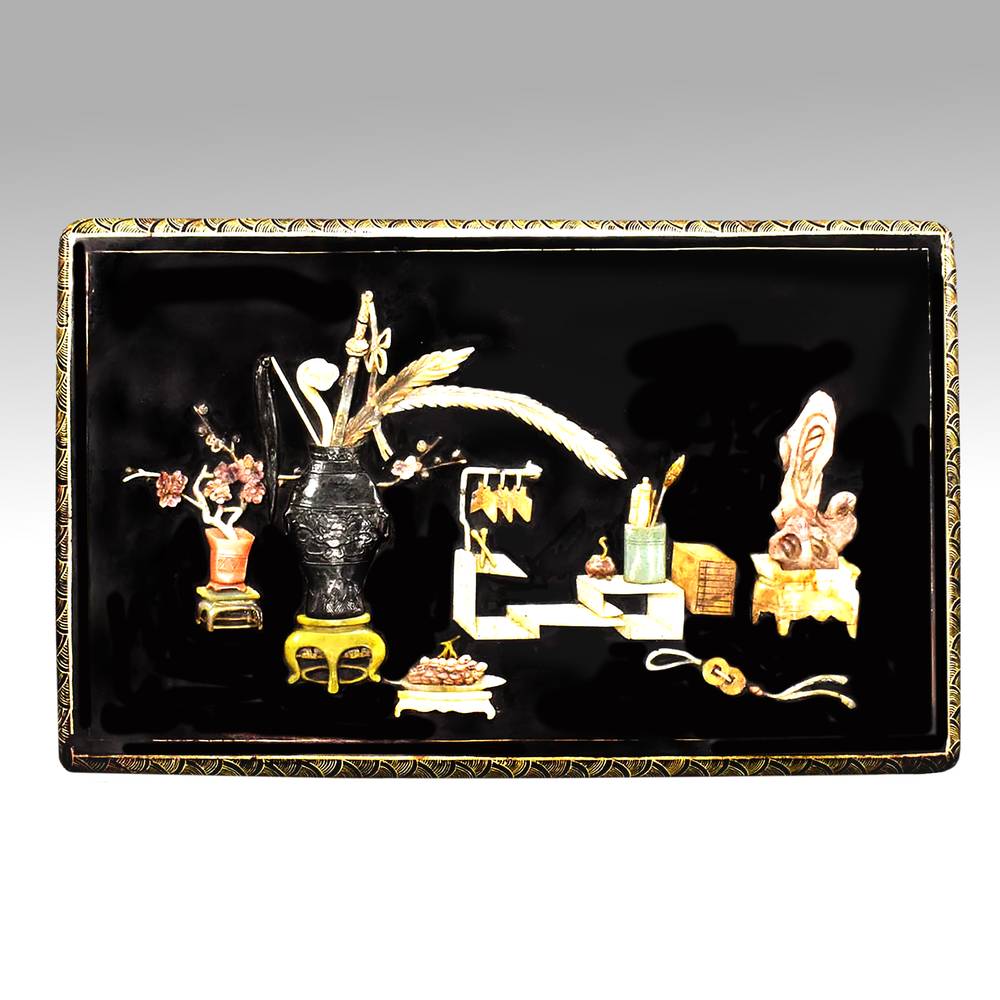 Lidded box inlaid with gem stones