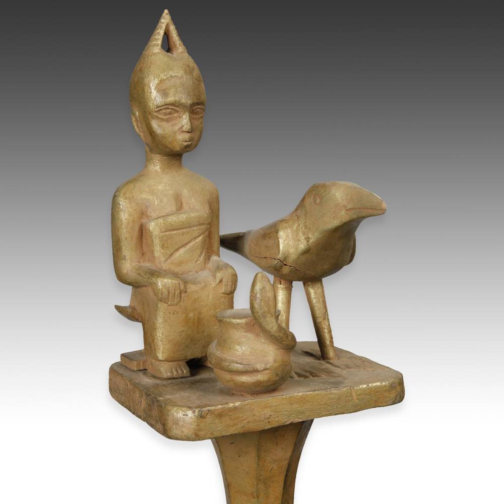 Linguist's Staff Depicting Seated Figure with Bird, Based