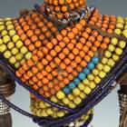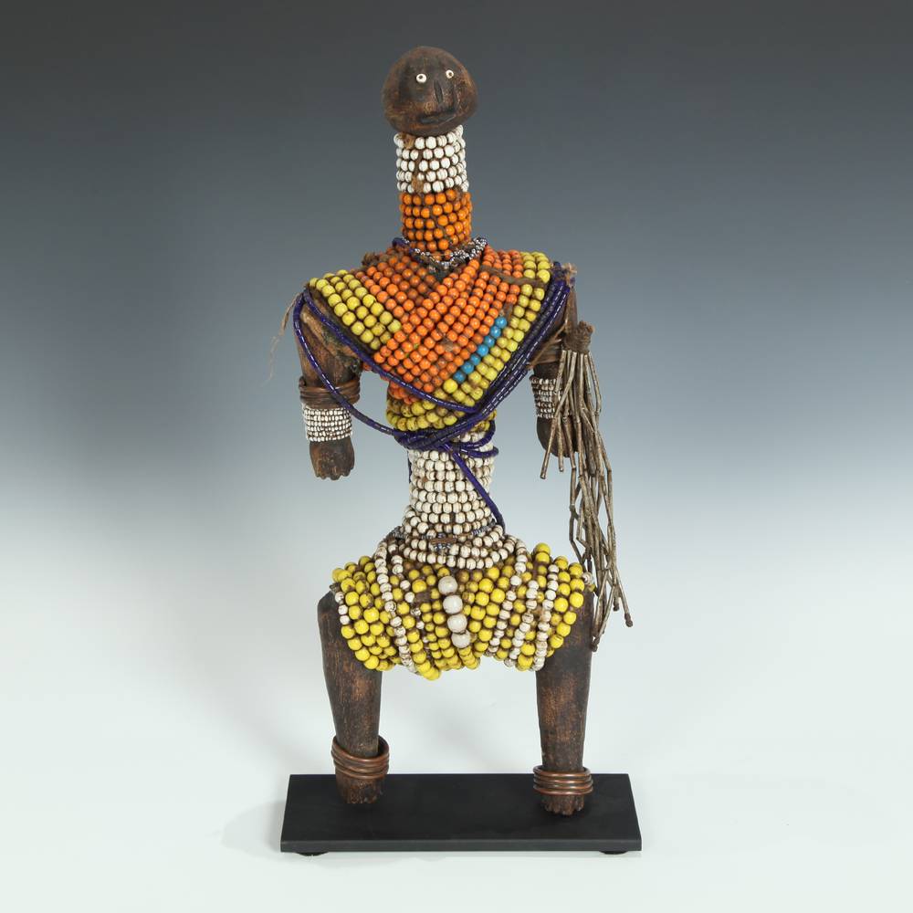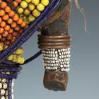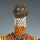 CARVED WOOD WITH GLASS BEADS, & COWRIE SHELLS