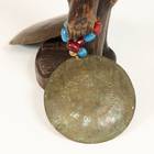 CARVED WOOD WITH BEADS AND BRONZE CYMBALS