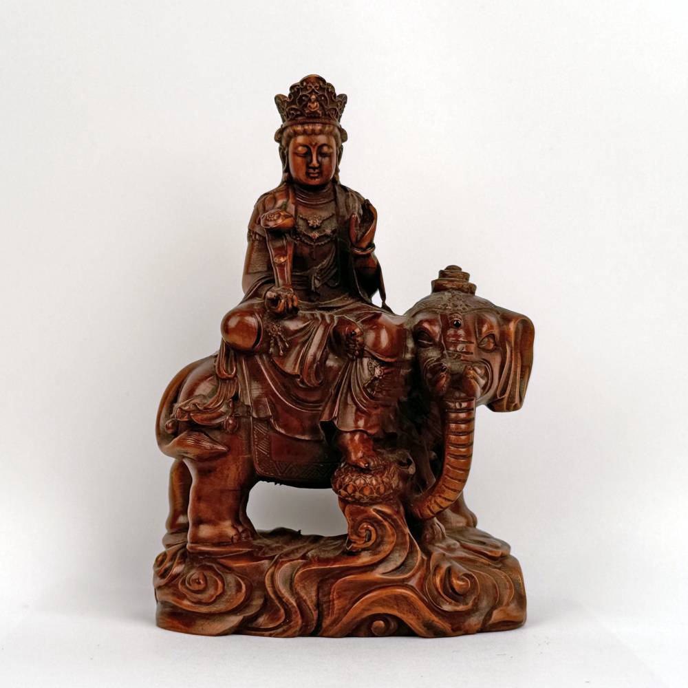 Hand Carved Figure of Samantabhadra Riding Elephant Holding RuYi Scepter