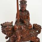 Hand Carved Figure of Manjushri Riding Lion