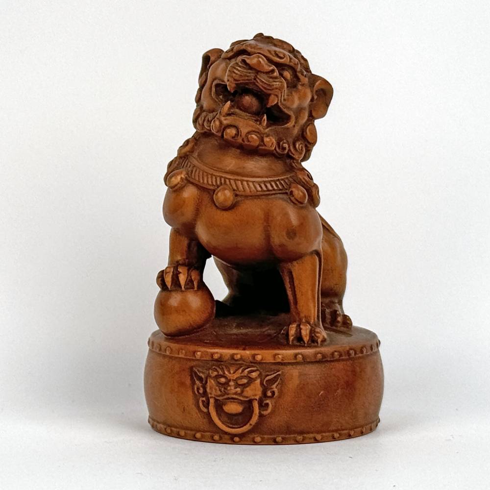 Hand Carved Foo Lion on Drum