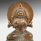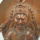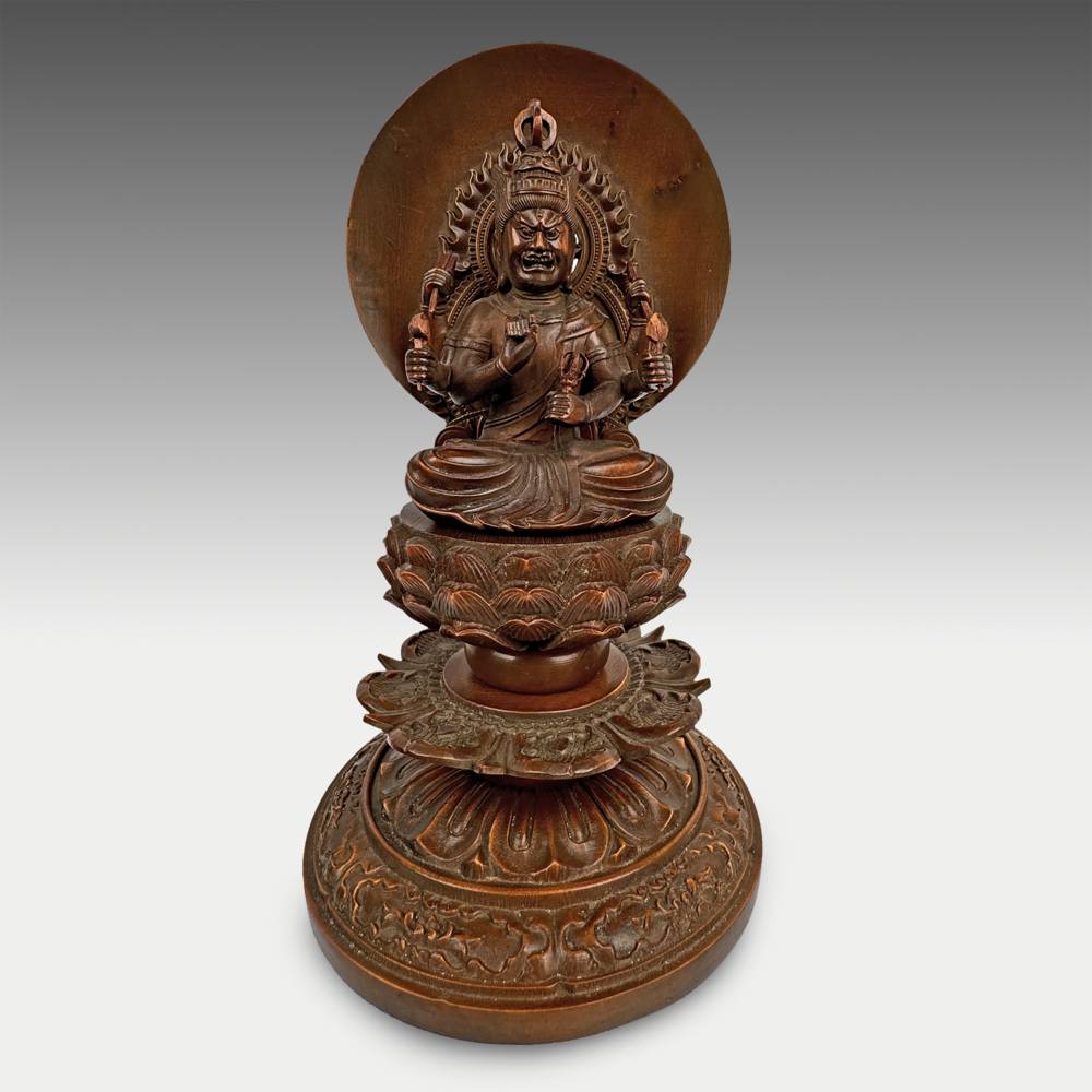 Hand Carved Figure of Fudo-Myo-O Achalanatha with Mandorla on Lotus Base
