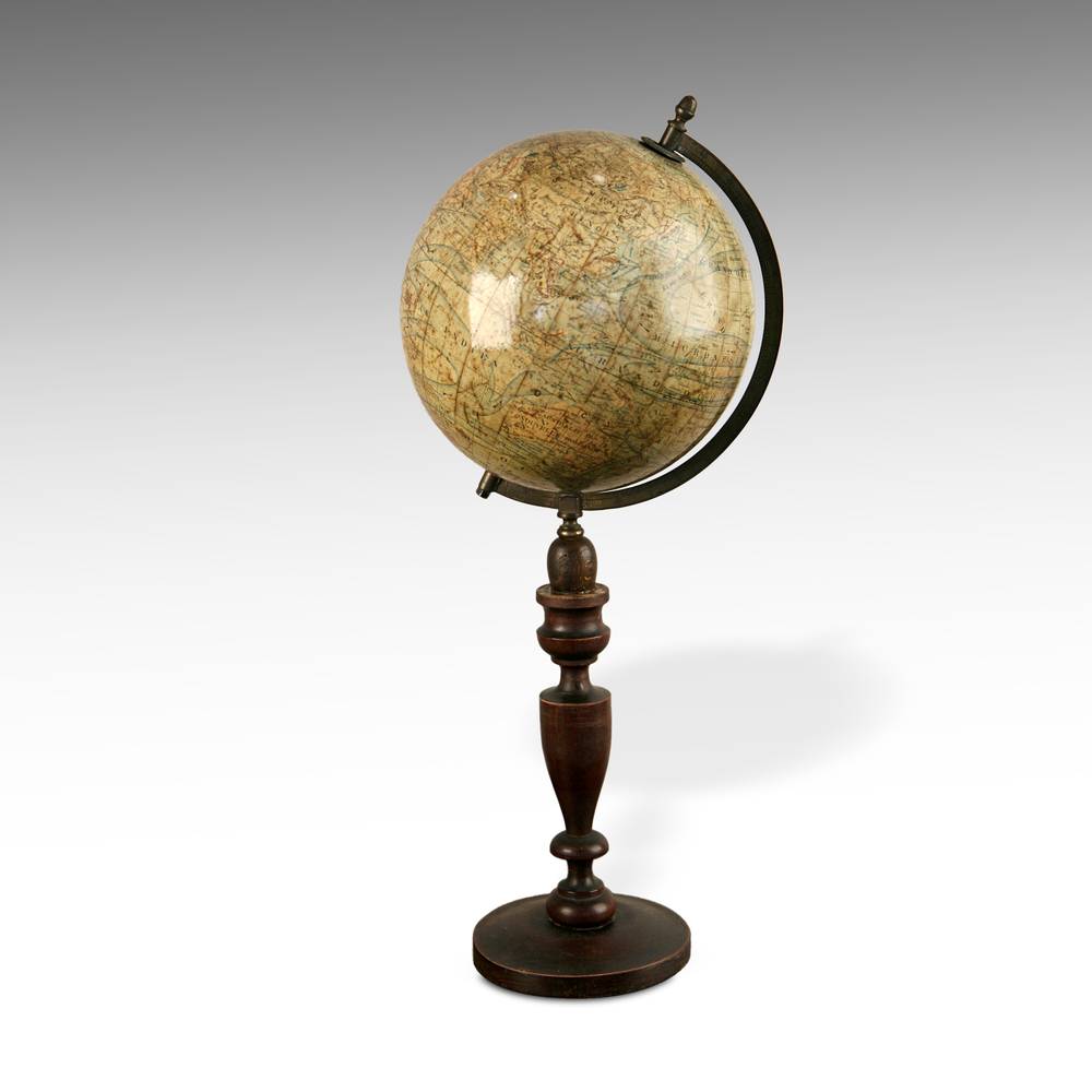 PLASTER GLOBE WITH PAPER GORES & WOOD BASE