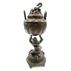 Lidded Censer Depicting Demon Oni Holding Top Burner on Floral base