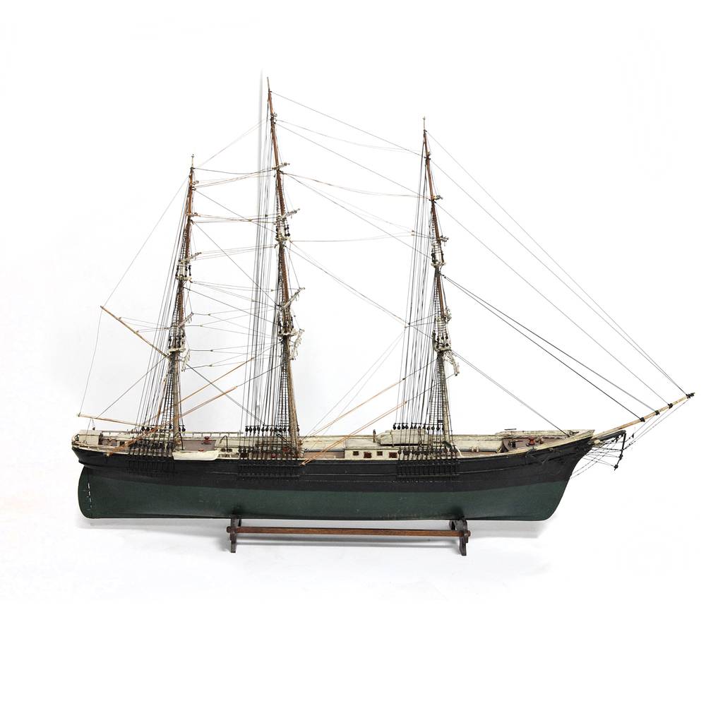 Model Ship - 3 Masted Schooner, Mounted on a Cradle Base
