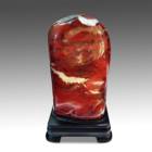 JI XUE SHI OR "CHICKEN BLOOD" STONE WITH HARDWOOD BASE