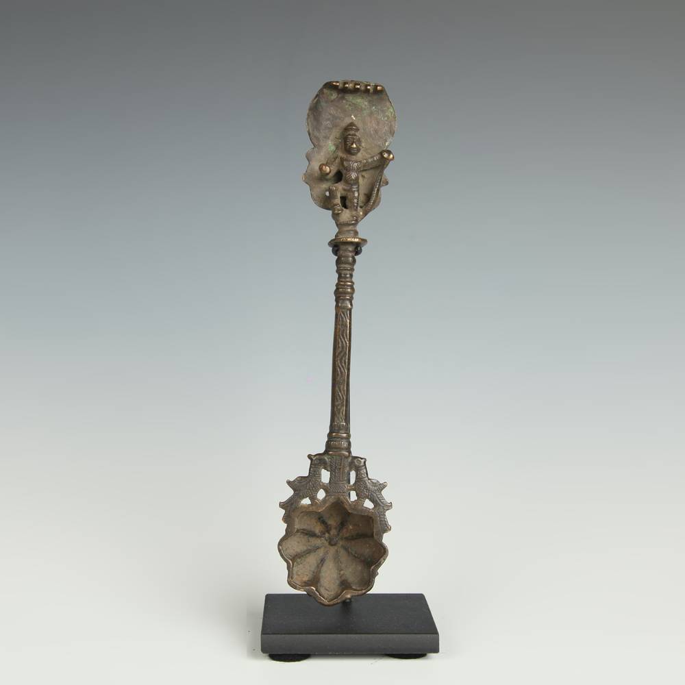 Oil Spoon Depicting Shiva and Cobra Hood and Fluted Bowl, Based