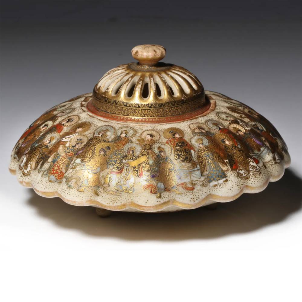Satsuma Tripod Gourd Form Censer with 100 Arhats