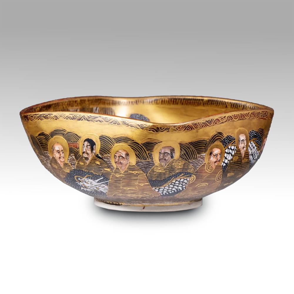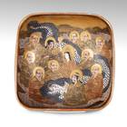 Satsuma Square Bowl Depicting "Thousand Faces" motif & intertwined dragon