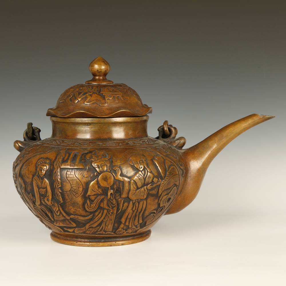 Teapot with Festival Scenes and Ashtamangala