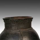 The Chamba people of Nigeria and Cameroon believe in a cosmic world in which the interaction between God, the dead, the creatures of the wild and human beings, constitute a common arena of daily concern. Additionally, they are concerned with the management of potentially dangerous agents called 'jup' that manifest through performances such as libations and sacrifices. While we do not know if these striking 3-legged pots were for food preparation or ritual use, that does not diminish their wonderful form and workmanship as objects of beauty and spiritual presence.
