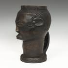 In the courts of the wealthy Kuba kingdom founded in the early 17th century in present day Democratic Republic of Congo, elaborately crafted drinking vessels held great symbolic value. Distributing large quantities of palm wine was a way of displaying wealth and generosity among titleholders and member of the aristocracy. These wooden libation cups were often carved with human and animals forms that communicated the ideals of refinement and power.
