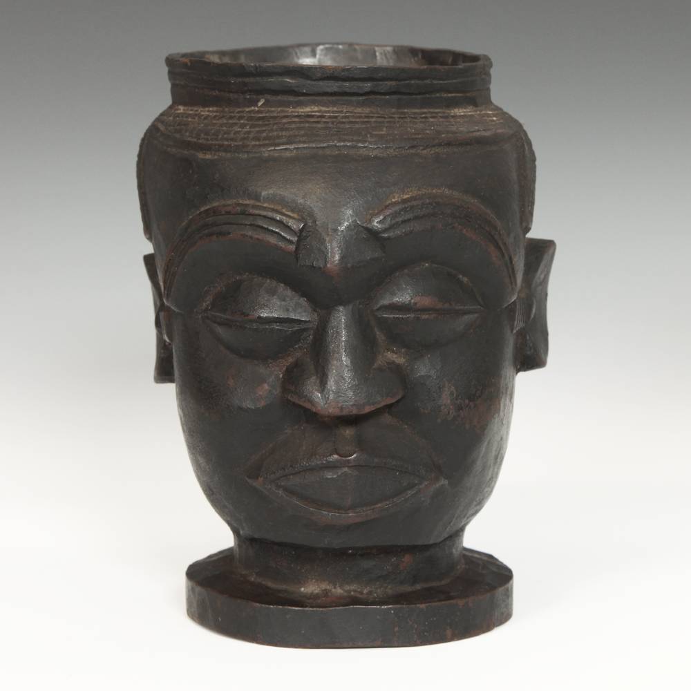 In the courts of the wealthy Kuba kingdom founded in the early 17th century in present day Democratic Republic of Congo, elaborately crafted drinking vessels held great symbolic value. Distributing large quantities of palm wine was a way of displaying wealth and generosity among titleholders and member of the aristocracy. These wooden libation cups were often carved with human and animals forms that communicated the ideals of refinement and power.