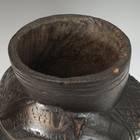In the courts of the wealthy Kuba kingdom founded in the early 17th century in present day Democratic Republic of Congo, elaborately crafted drinking vessels held great symbolic value. Distributing large quantities of palm wine was a way of displaying wealth and generosity among titleholders and member of the aristocracy. These wooden libation cups were often carved with human and animals forms that communicated the ideals of refinement and power.