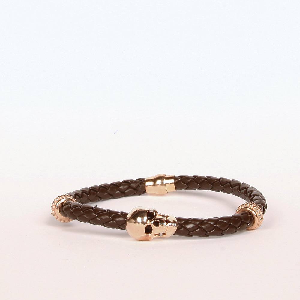 BRAIDED BROWN LEATHER, ROSE GOLD