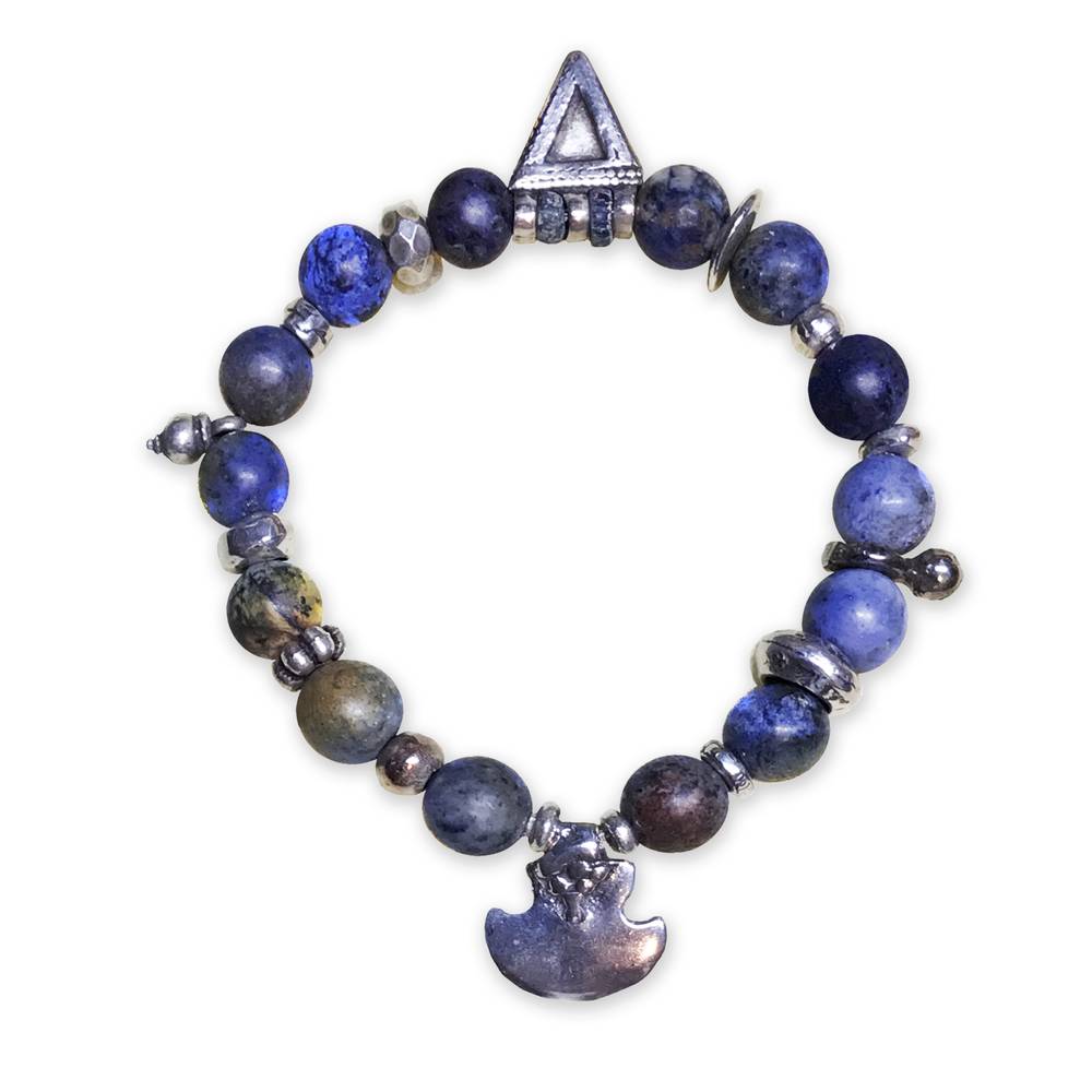 Sunset Dumortierite, Antique African Brass Beads, Silver Disc Pendant