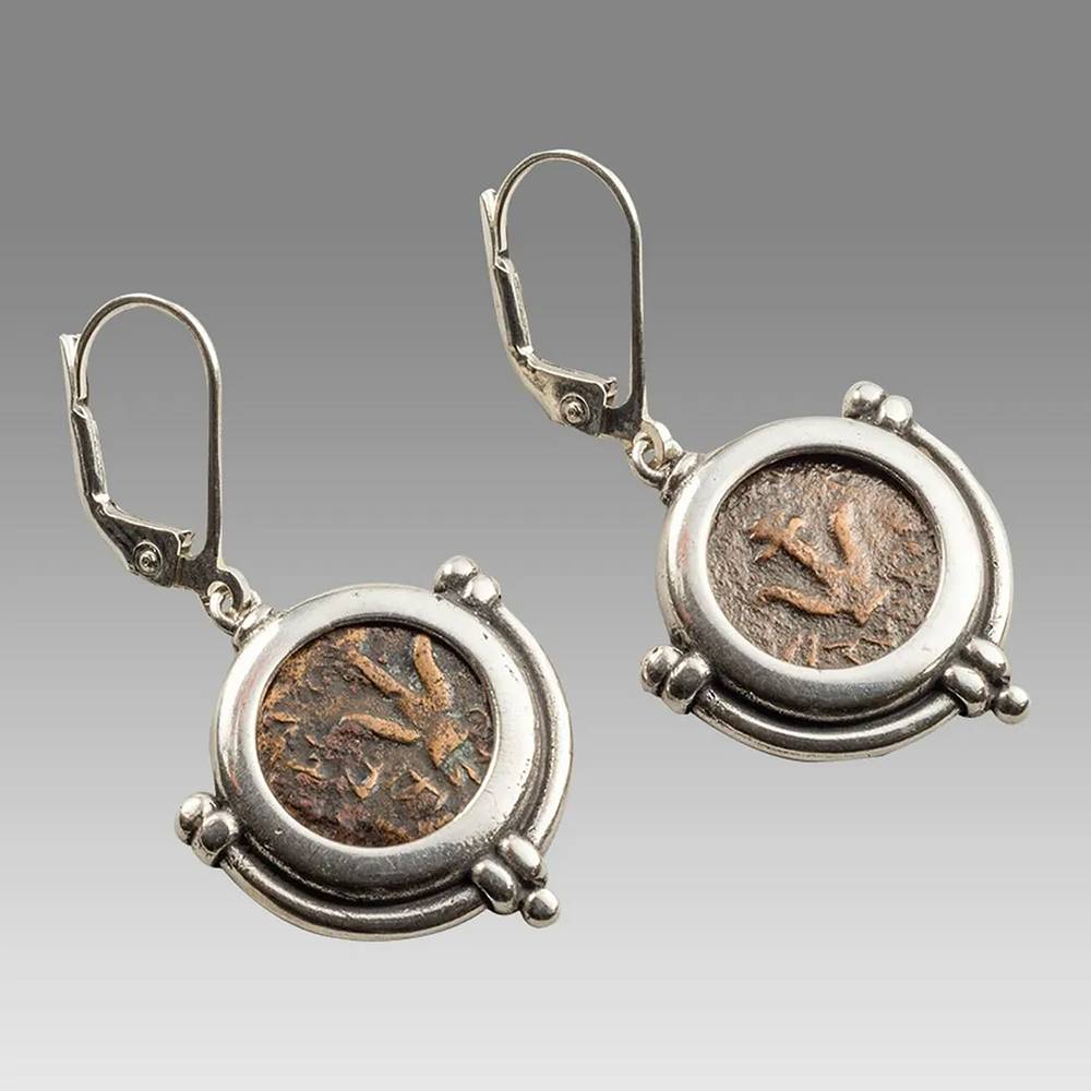 Ancient Biblical Widows Mites Coins set in Silver Earrings