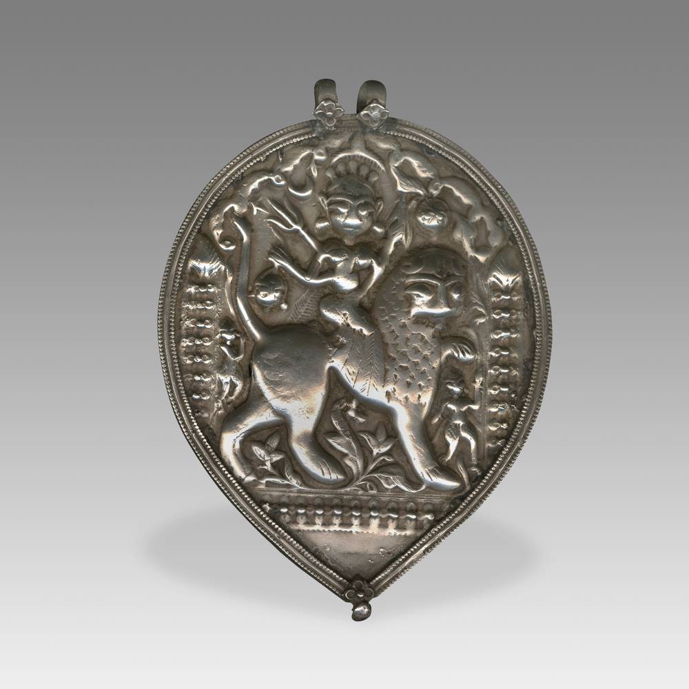 Plaque Amulet Depicting Mahakali on a Lion