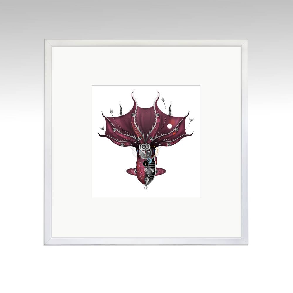 Hand-drawn digital/fine art print; Framed