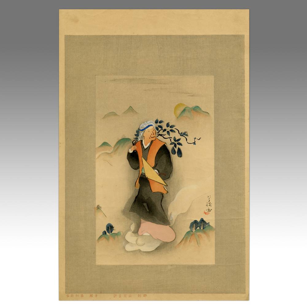 OLD WOMAN ON CLOUD FROM CHIKAMATSU SERIES