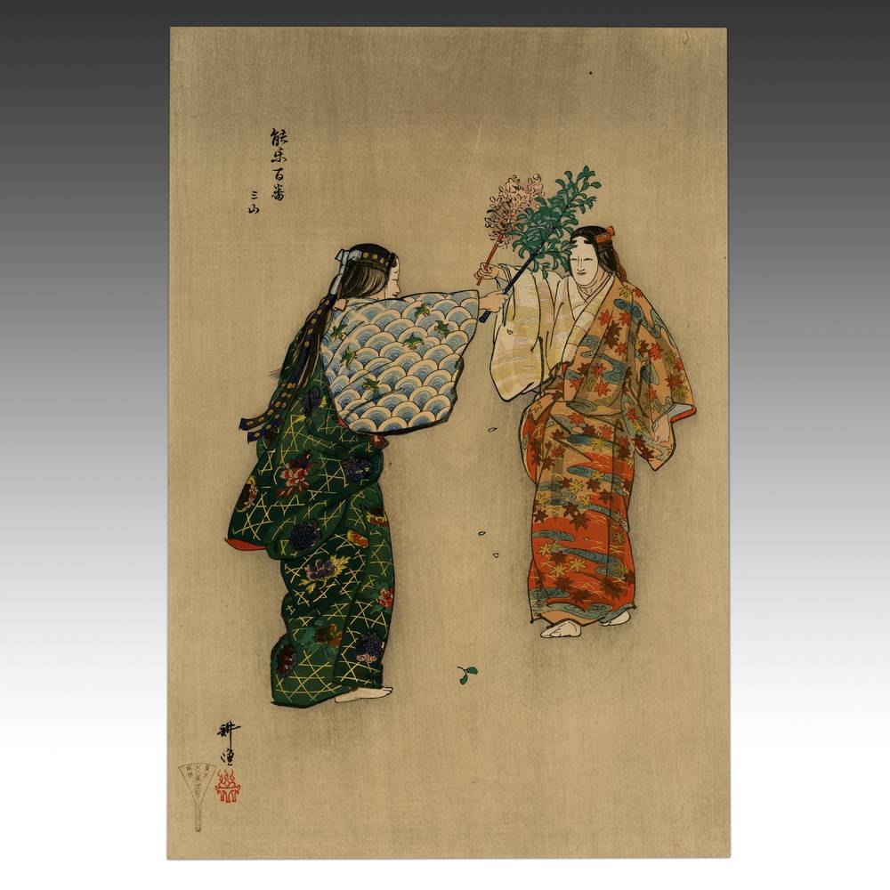 Noh Drama Scene: Mitsu-yama (in rare vertical format)