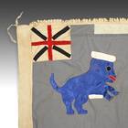 Even though the Akan societies in Ghana had no standing army, the asafo or people's militia, was a well established social and political organization based on military principles. Each asafo group is identified by a particular name and number and through a set of symbols displayed prominently on its flag. Verbal proverbs, a significant facet of Akan culture, are represented by colored cutout figures appliqued on the cotton ground.