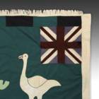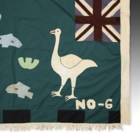 Even though the Akan societies in Ghana had no standing army, the asafo or people's militia, was a well established social and political organization based on military principles. Each asafo group is identified by a particular name and number and through a set of symbols displayed prominently on its flag. Verbal proverbs, a significant facet of Akan culture, are represented by colored cutout figures appliqued on the cotton ground.