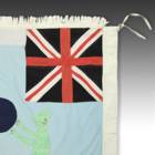 Even though the Akan societies in Ghana had no standing army, the asafo or people's militia, was a well established social and political organization based on military principles. Each asafo group is identified by a particular name and number and through a set of symbols displayed prominently on its flag. Verbal proverbs, a significant facet of Akan culture, are represented by colored cutout figures appliqued on the cotton ground.