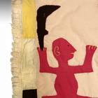 FRANKAA OR ASAFO MILITARY FLAG; Red Flying Lizard, 2 Men, Red Bird & Elephant - Vertical