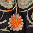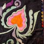Cotton with silk "cut and fold" applique, satin stitch and metal trim