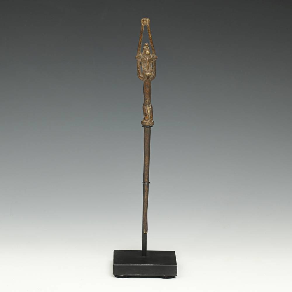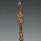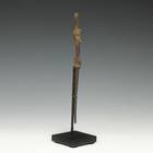 Hair Pick Depicting Kneeling Female Figure with Arms Raised, Based