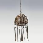 Silver repousse helmet hat with twisted wire cones and dangles with octagonal floral pattern on side