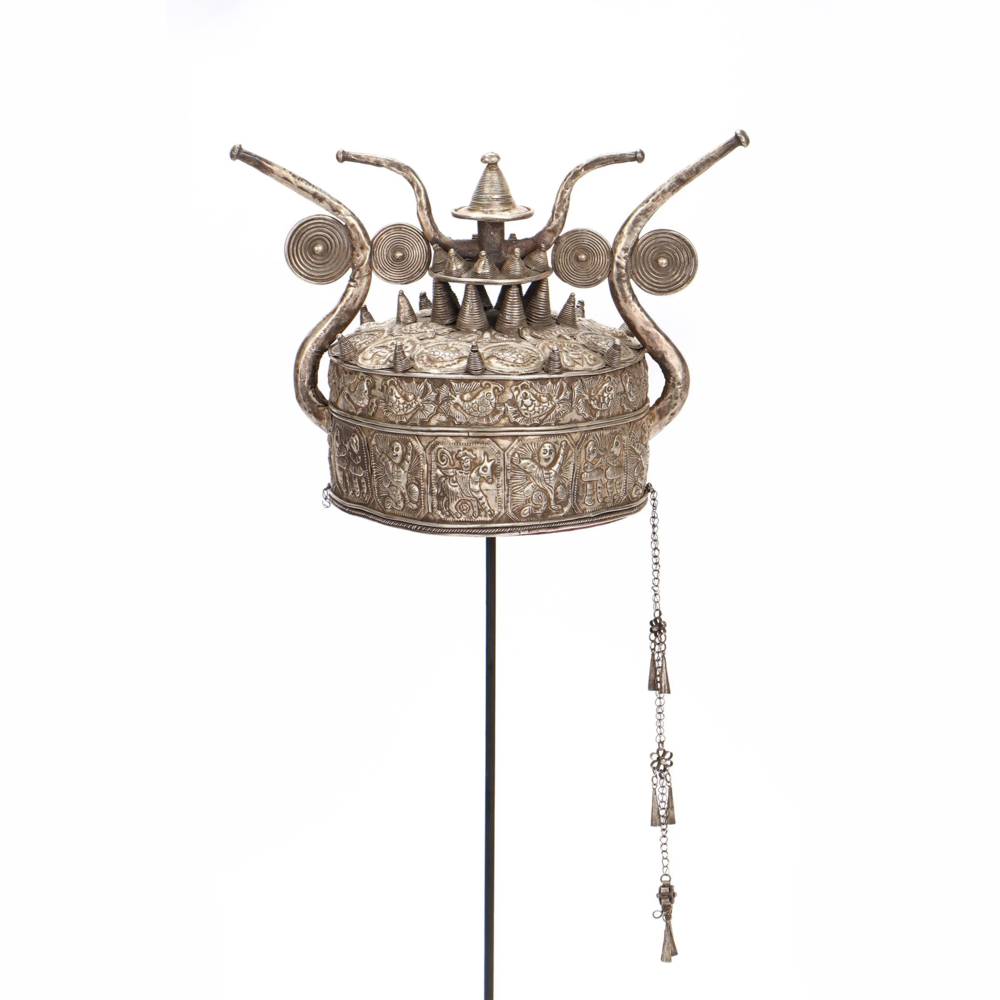 Repousse Ceremonial Hat with two tiers of horns and dangles