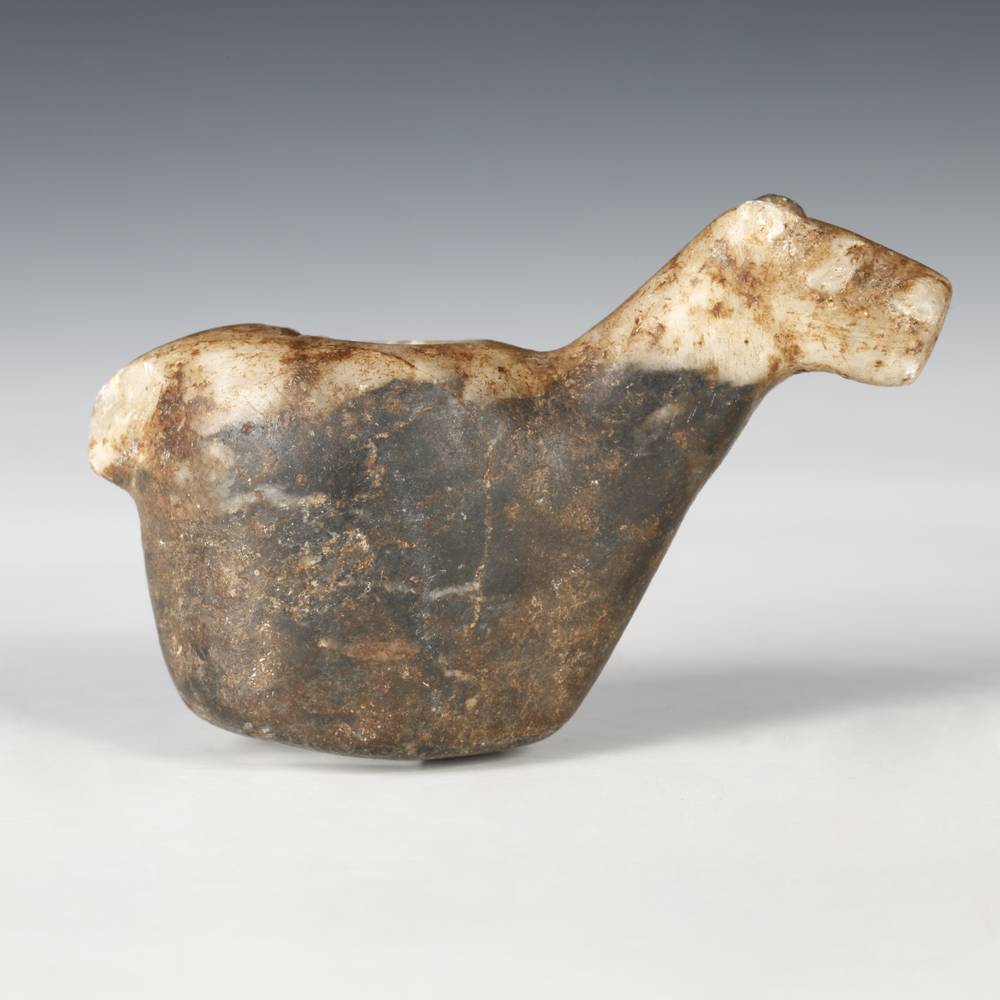 Alpacas and llamas held a special place in ancient Andean societies. The alpaca in particular was seen as a gift from the fertility goddess Pachamama. Canopas are hand carved votive figures of alpacas made from a fine grained stone, then polished with sand and water. Each one has a hole in its back called a qocha (lagoon), which is a container for offerings made during the haywarisqa ceremony. Symbolically, the canopa represents the cosmology of the native peoples of the high Andes.