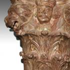 Carved Pillar with Animal Faces on Capitol; Stone Base