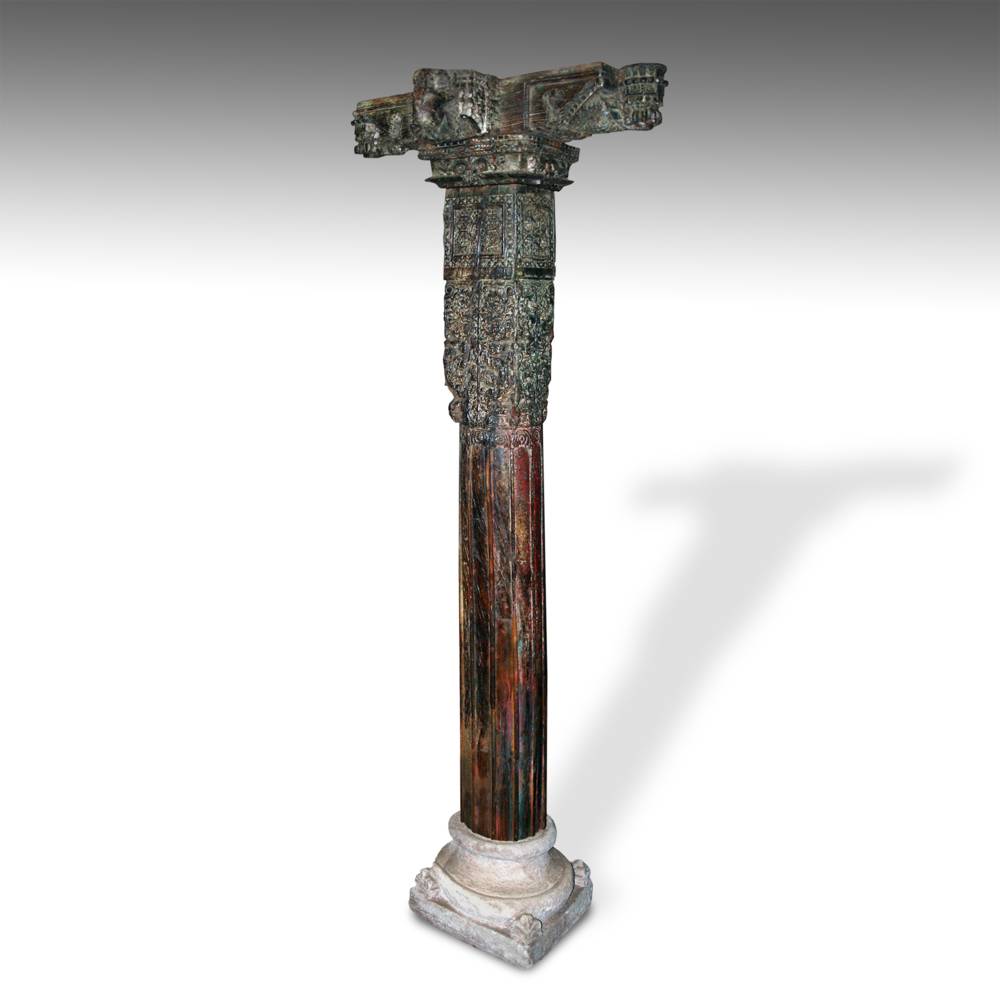 Carved Pillar with Cross Style Capitol & Stone Base