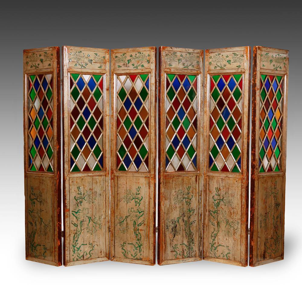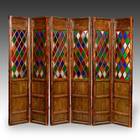 Six Panel Screen Set with Diamond Shaped Stained Glass