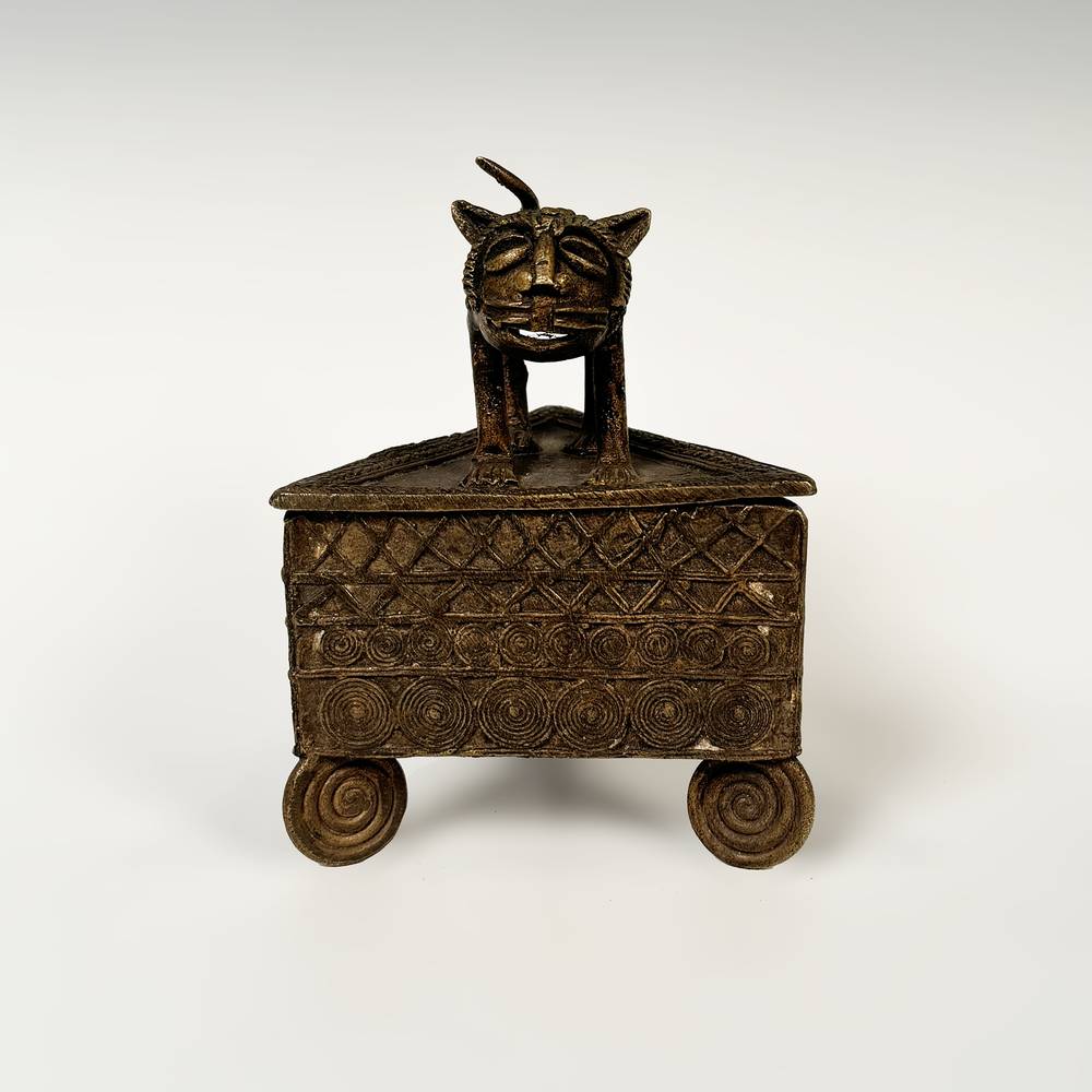 Triangular Gold Box with Leopard Finial