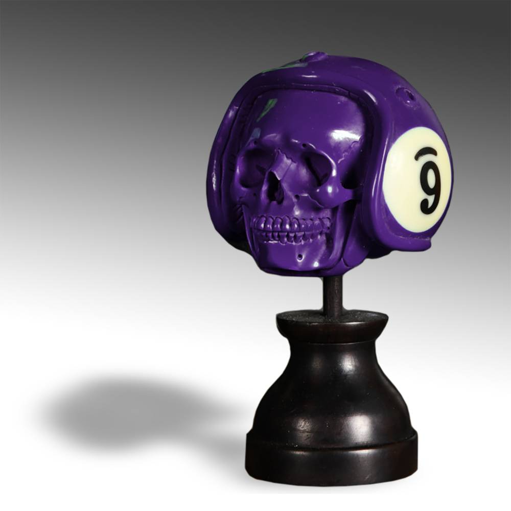 Scooter Helmet Billiard Ball Skull on Wood Base; Red 3 Ball