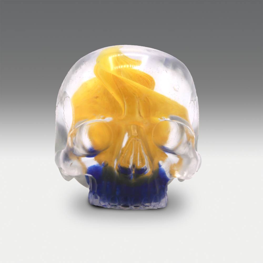 Re-cut Paper Weight Skull with Blue and Pink Flower