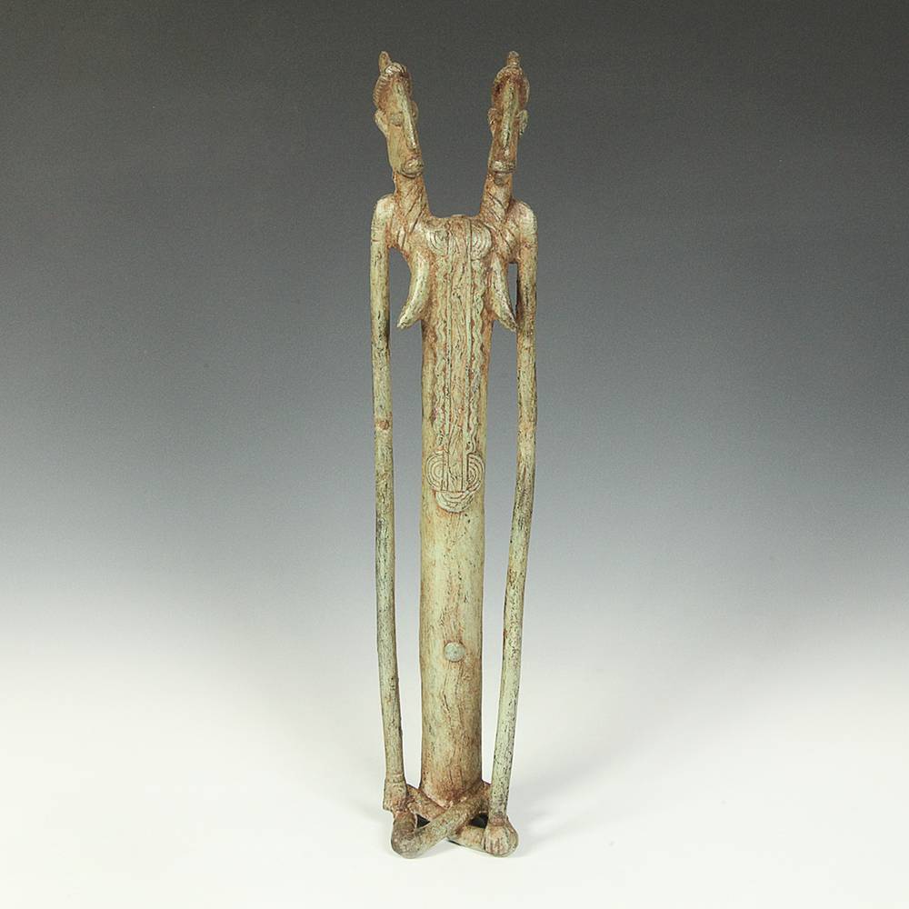 2-Headed Female Horned Figure with Crossed Legs