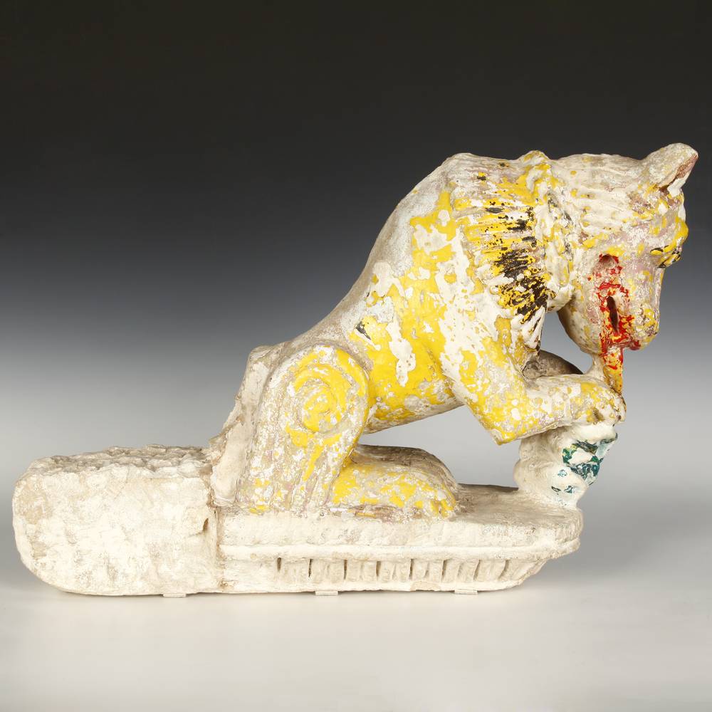 CARVED & PAINTED STONE 13'' W x 4'' D x 11'' H