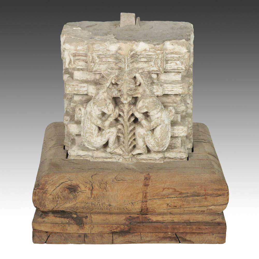 CARVED & PAINTED STONE 15'' W x 15'' D x 17'' H