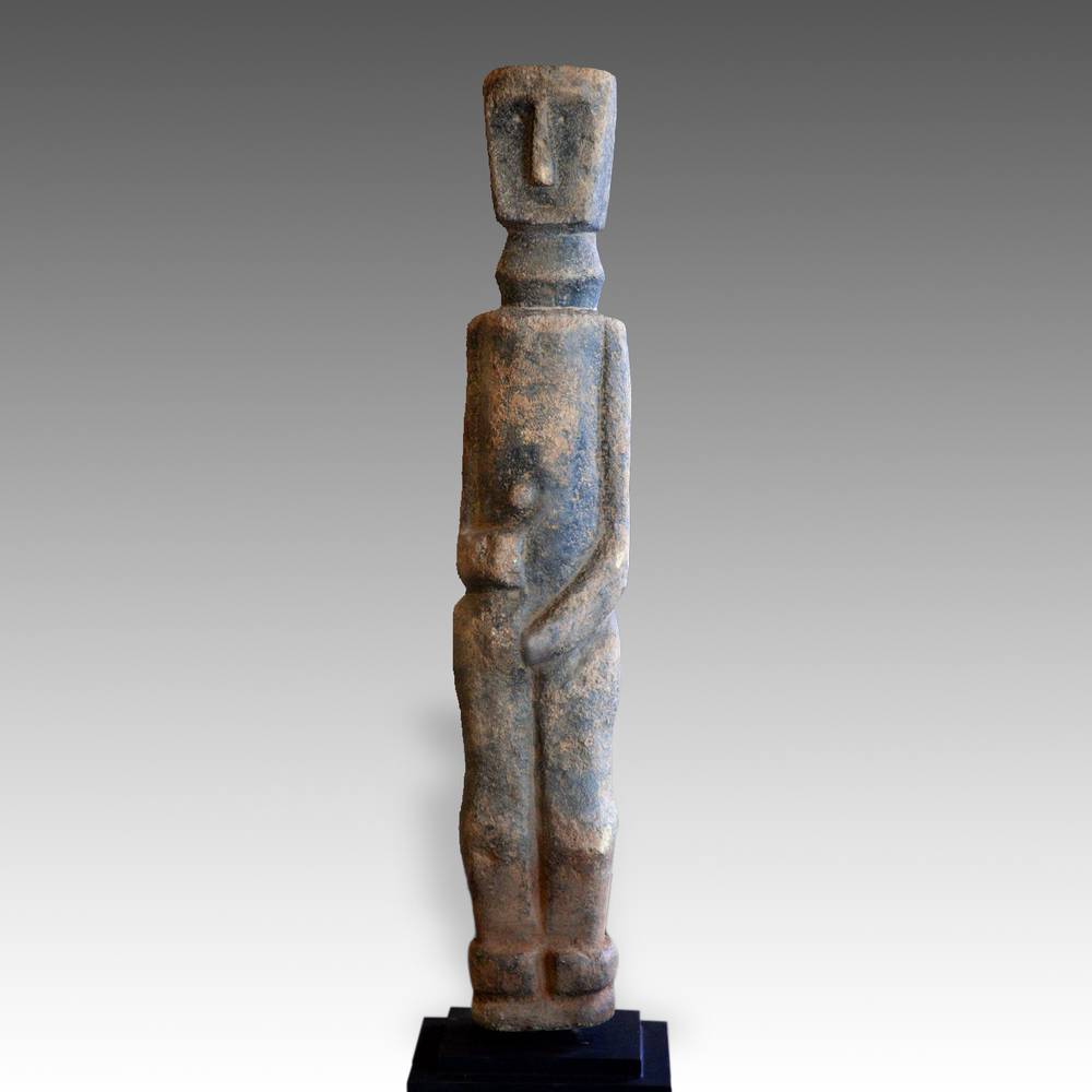 In the recent past the Bongo people lived in the southern part of the province of Bahr-el-Ghazal in the grasslands south of Sudan. The Bongo honored heroic warriors or hunters with sculpted forms known as Ngya, to insure that they were well received into the village of the ancestors. The shape of the markers range from fully naturalistic bodies to abstracted figures. Ngya serve to remind us that those who have gone before can still inspire, help and motivate us in the present.