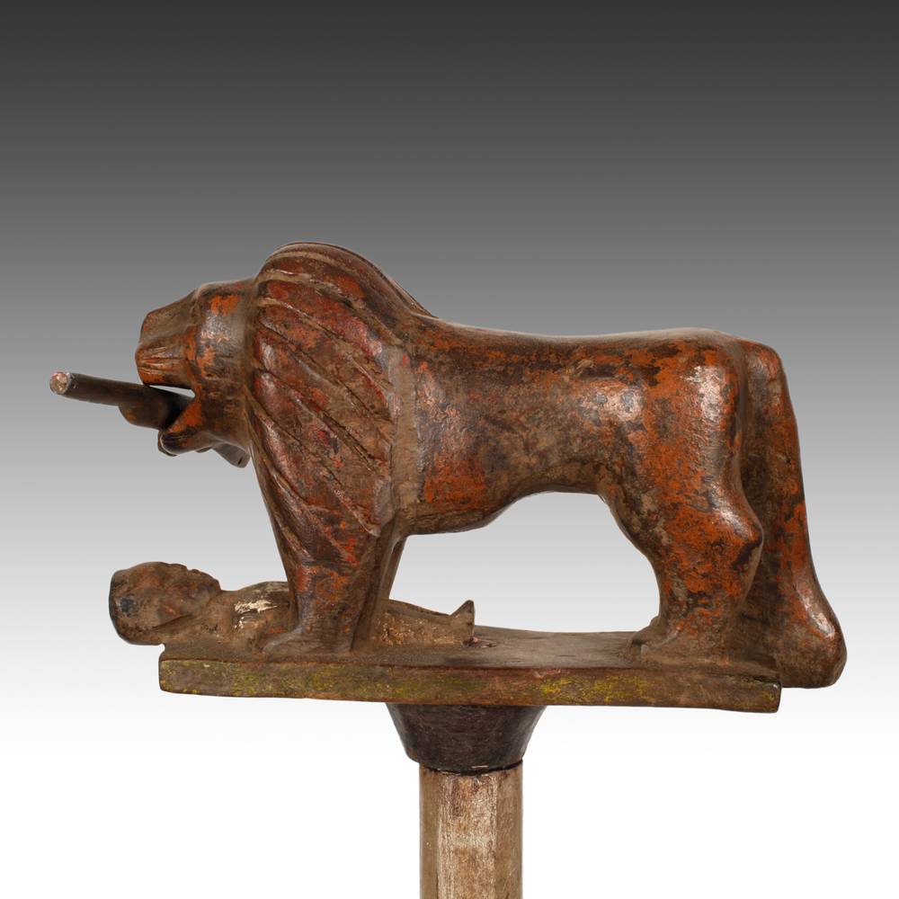 Linguist's Staff Depicting Lion Holding Rifle Over Man