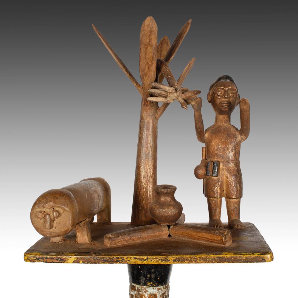 Linguist's Staff Depicting a Man with An Animal Under a Tree