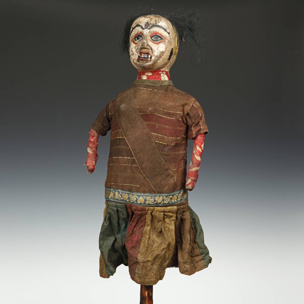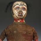 CARVED & PAINTED WOOD WITH HAIR & CLOTH